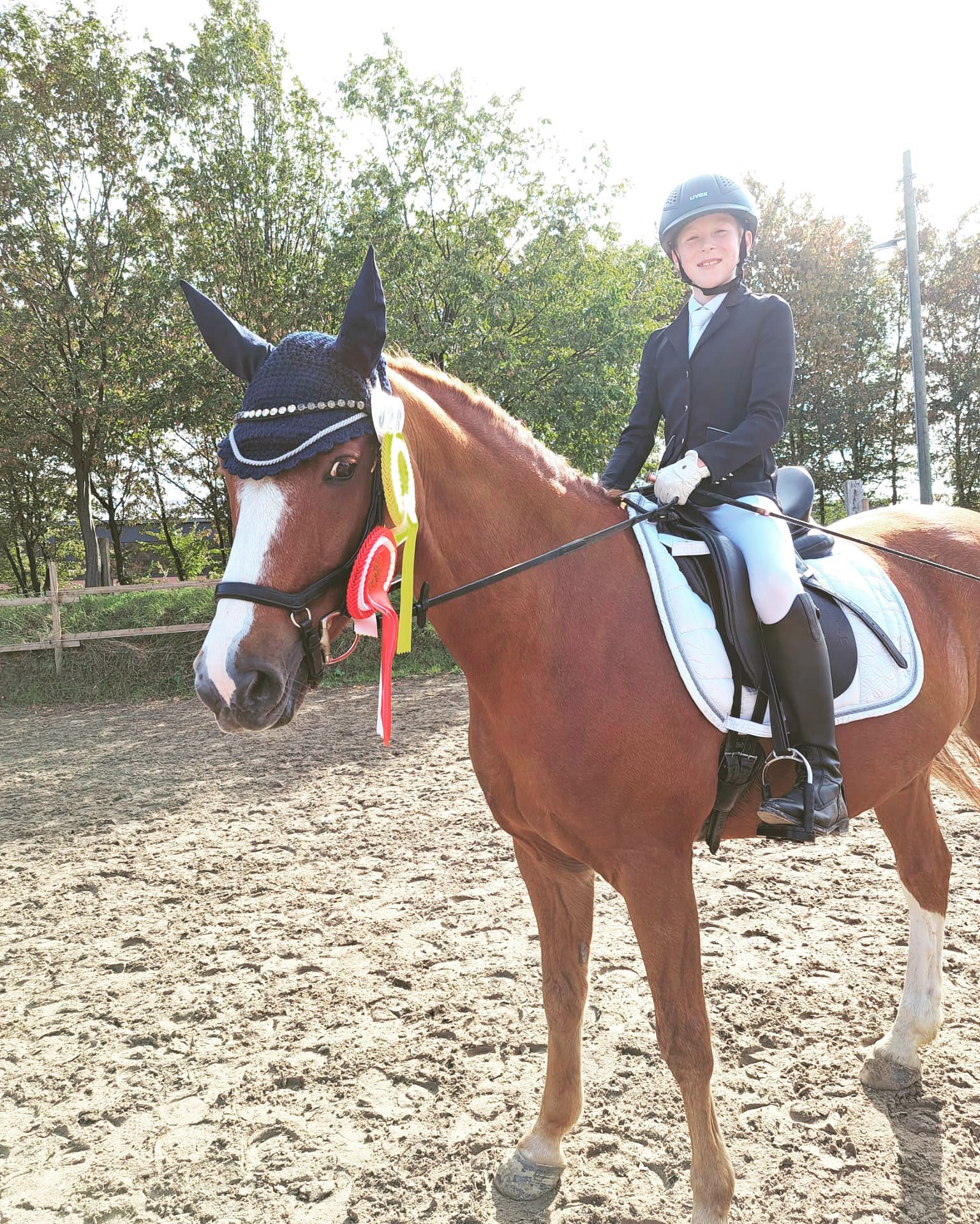 Unser Phil war im November 2023 beim 8er-Team Finale unterwegs. In der Gesamtwertung WBO U14 Rheinland konnte er sich dort den 8. Platz sichern und gewann in der Verlosung außerdem ein Training bei Isabell Werth . Im Februar 2024 ging es für unseren Phil dann zu einer aufregenden und lehrreichen Trainingseinheit zu Isabel Werth. Vielen Dank an die Galopp Pferdefutter und Rheinlands Reiter+Pferde , dass ihr unserem Phil dieses einzigartige Erlebnis ermöglicht habt.